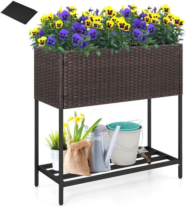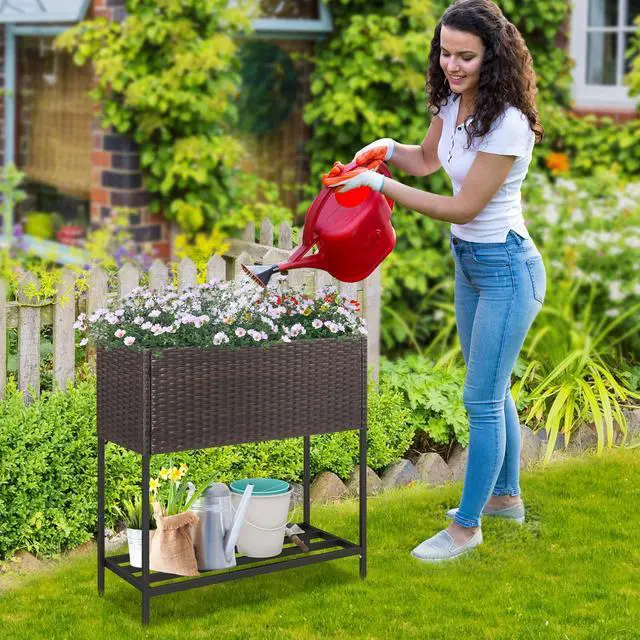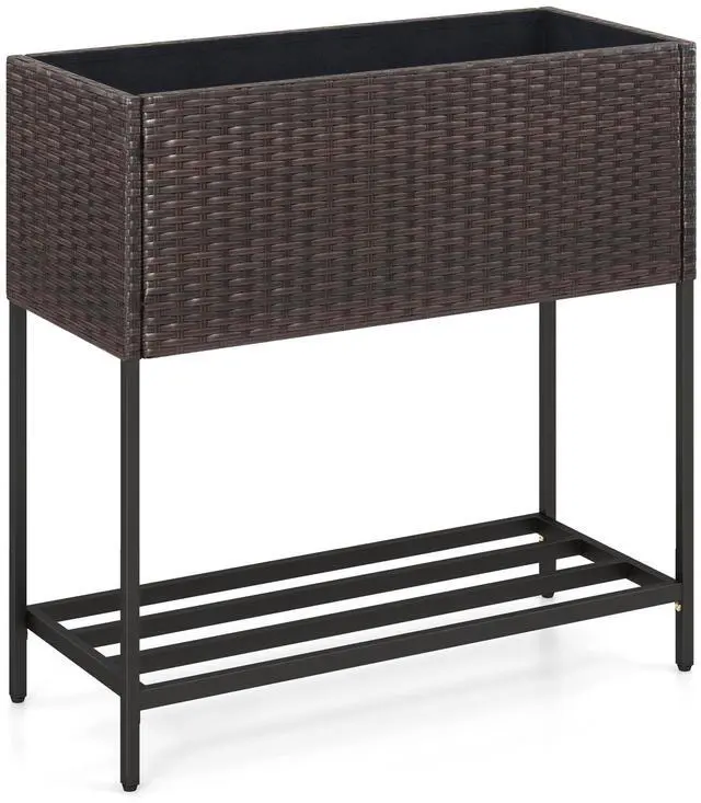 Durable PE Rattan Finish: Crafted with premium hand-woven PE rattan, this planter box is fade-resistant, sunproof, and easy to maintain. The elegant brown rattan look adds a refined touch to any garden, patio, or balcony.