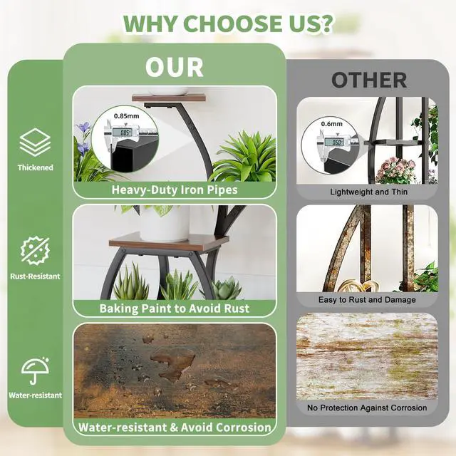 Easy to Assemble and Safe- This indoor plant organizer is a breeze to put together, coming with all the necessary components for quick assembly. It includes an anti-tip strap to protect your kids and pets. More than just a plant holder, this unique display stand is a decorative upgrade for any bedroom, living room, or patio.
