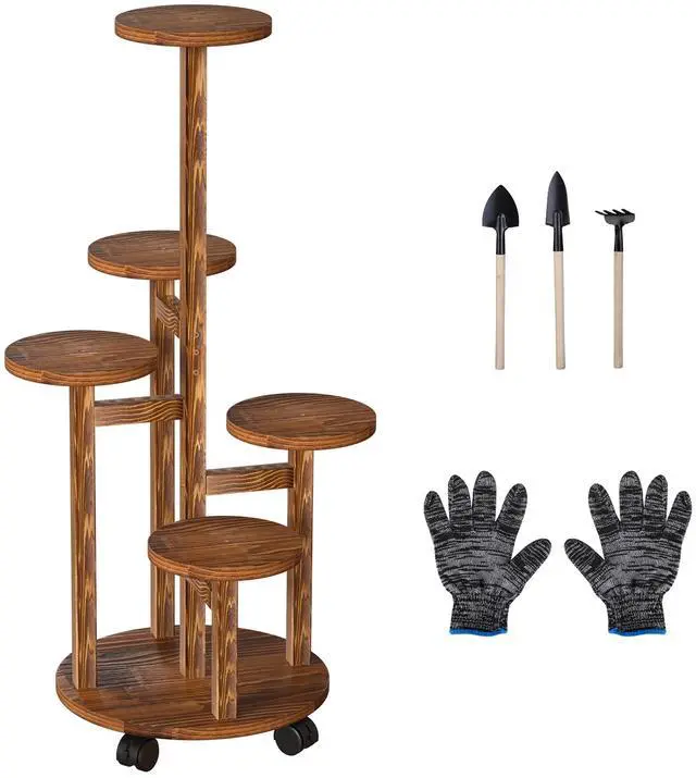 Pine Wood Plant Rack: Made of pine wood that undergoes 200 high temperature carbonization, the display rack has a smooth surface and retains its texture without fading, shrinking, warping or cracking. It\'s compression resistance, waterproof and anti-corrosion.