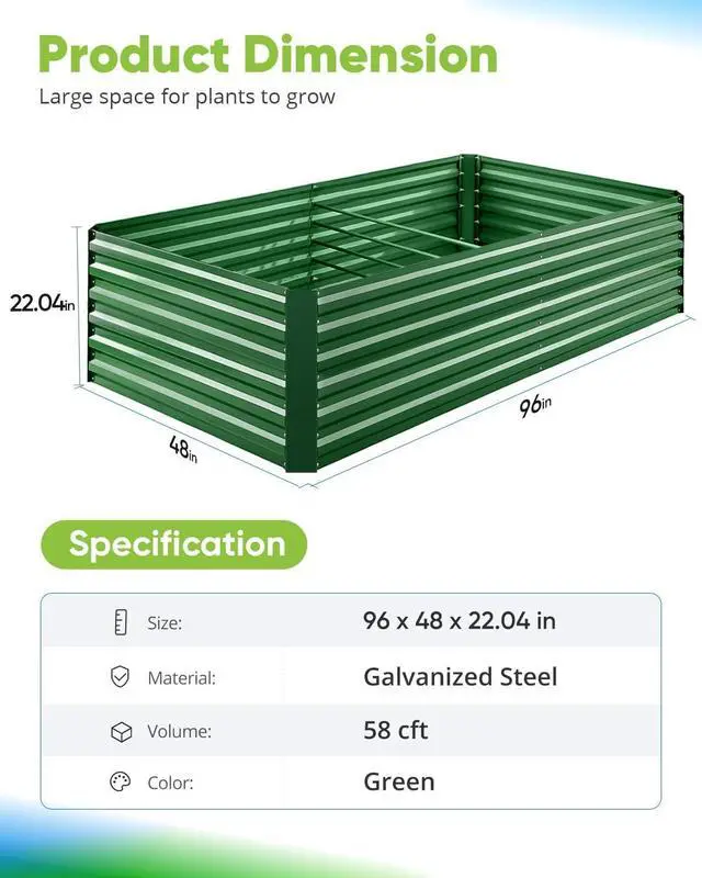 Built To LastRaised garden box is made of powdered coating galvanized steel panel, assure fine condition of the metal garden bed, it' s able to stand harsh weather conditions, won' t crack in years, use without worry.