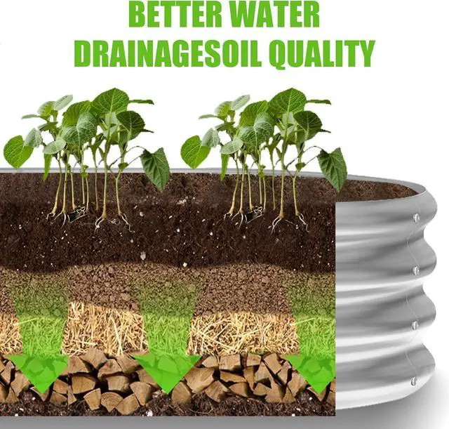 STABLE AND DURABLE: Inside our raised beds for gardening, ten pull rods are added, which greatly increases the stability of the product. In addition, the galvanized planter is made of thickened steel and evaluated coated paint, which can stand up to the sun and rain, won' t rust or corrode, and has a super long service life.