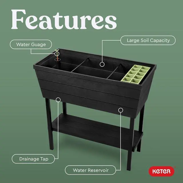 WATER RESERVOIR: Full watering system includes a reservoir to prevent root decay and over watering