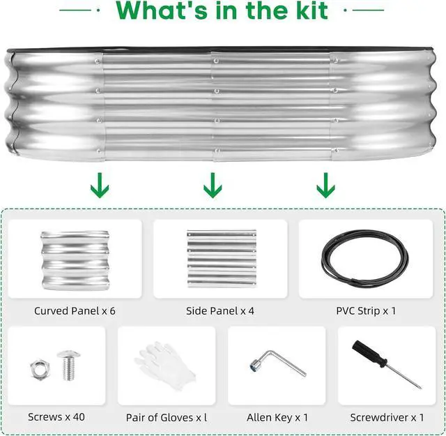 What You Get: we have included Galvanized raised garden bed kit with detailed assembly instructions, rubber edge strips, safety gloves, wrench tools and with galvanized nuts and bolts in the box. These essential tools elevate your overall planting and gardening adventure.
