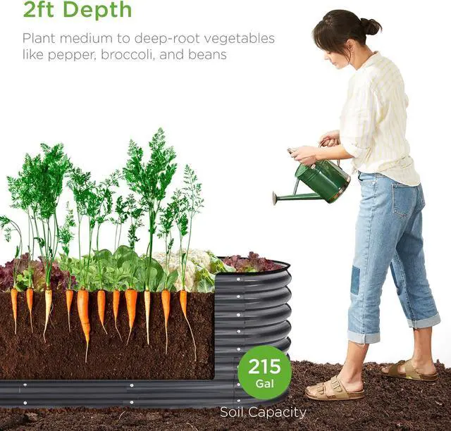 DEPTH: 24 inches of depth holds up to 215 gallons of soil-ideal for medium to deep root plants and vegetables like broccoli, beans, and more.