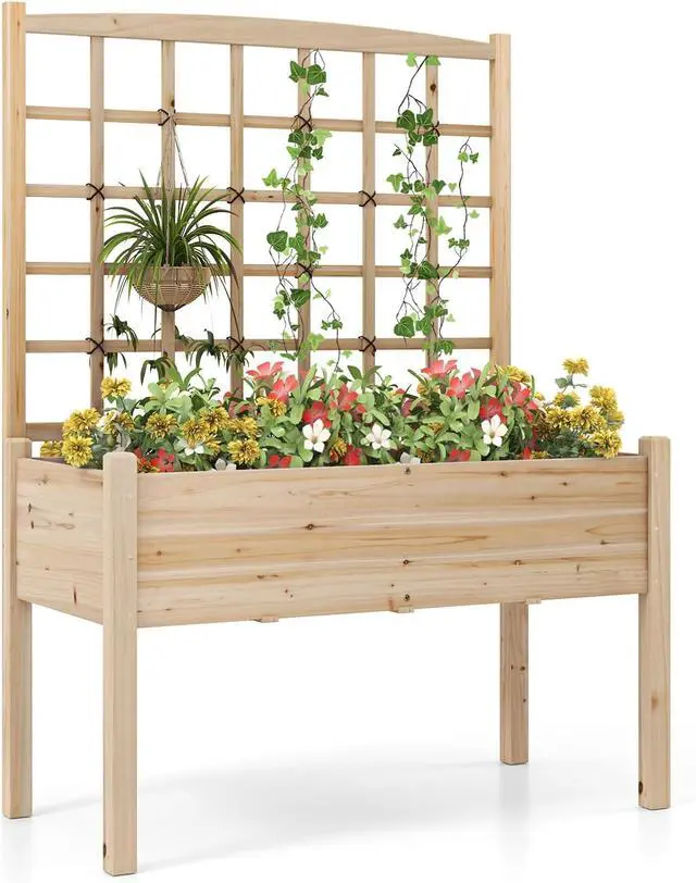 Multifunctional Lattice Trellis: The elevated garden bed is equipped with a lattice trellis to support climbing plants, keeping them growing upwards gracefully. Additionally, the trellis serves as a charming mount for hanging small flower baskets or decorative ornaments.