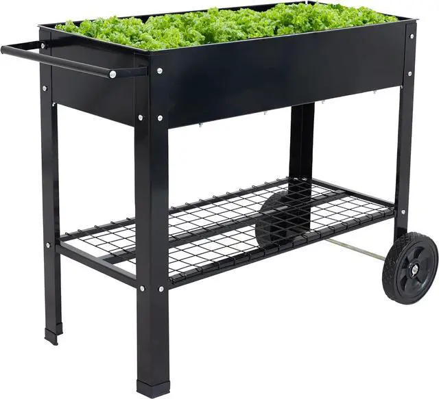 BUILT-IN STORAGE: This outdoor herb garden bed cart features a handy lower shelf that is great for keeping gardening tools and supplies within reach. The lower shelf is also a great place to store potted plants.