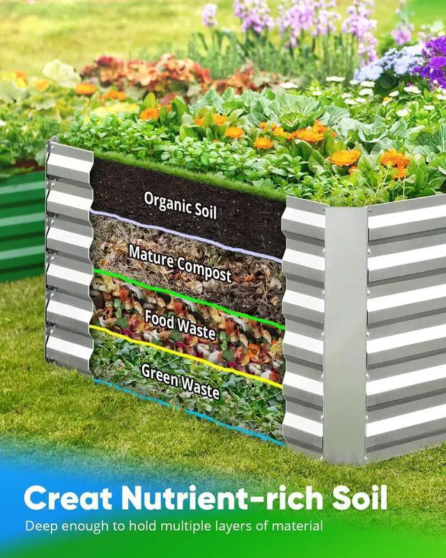Deepened HeightMetal raised garden bed is 22.04 " height, normal height is only 12". You can add multiple material at the bottom layer to create nutrient-rich soil; grow many deep-root vegetables or fruits; also a tall garden bed can keep small pets out like chicken, puppies, rabbits.