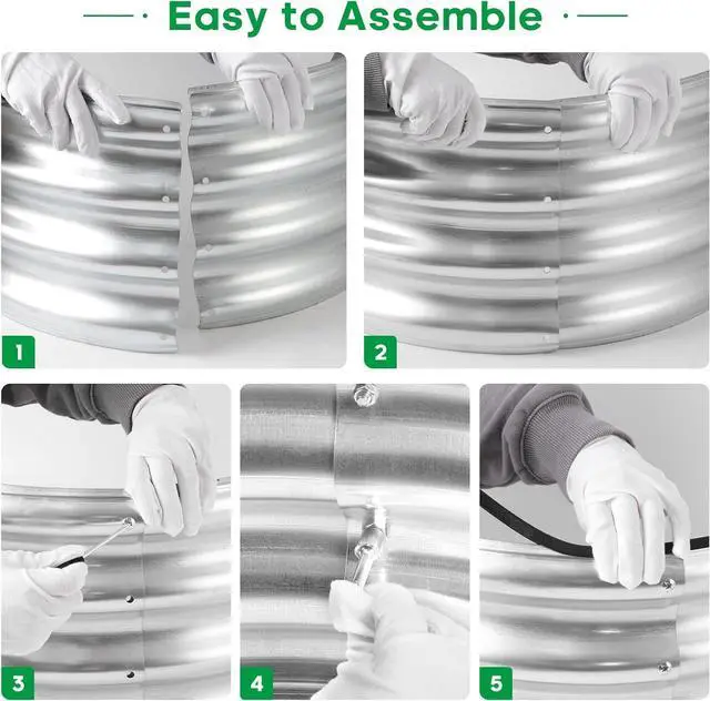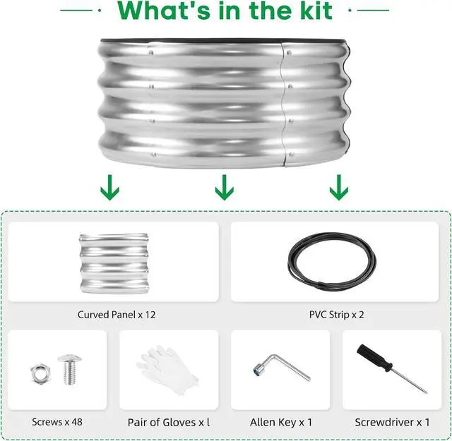What You Get: we have included Galvanized raised garden bed kit with detailed assembly instructions, rubber edge strips, safety gloves, wrench tools and with galvanized nuts and bolts in the box. These essential tools elevate your overall planting and gardening adventure.
