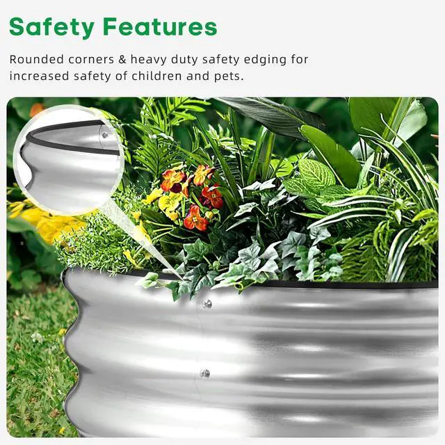 Durable Material: This raised bed is made of thickened galvanized metal. From heavy rain to extreme heat, we made sure to protect your garden bed from rust and corrosion, so it' s the perfect choice if you' re looking for a long-lasting solution.
