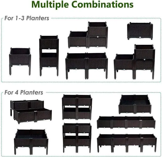 Various Combinations: There are four planter boxes which can be installed in a variety of shapes. Multiple pieces of planter boxes can be used to produce large square or rectangle garden bed. And two beds are easy to stack to create higher wall for special plants.