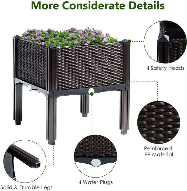 Take Care of Plants Easily: Bending down or squatting to plant is not good for your knees and back. This raised planter is designed in suitable height that you wont feel strenuous but get an enjoyable planting experience. At the same time, these raised planters also avoid pests damage.