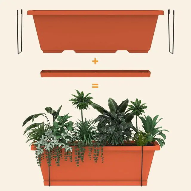 Raised Planter BoxEach plastic planter bins consists of bottom drainage holes and removable tray. Excess water can be drained to ensure that the soil can breathe, thus promoting the growth of plants. (Dimension: 16.8 x 6.8 inches)