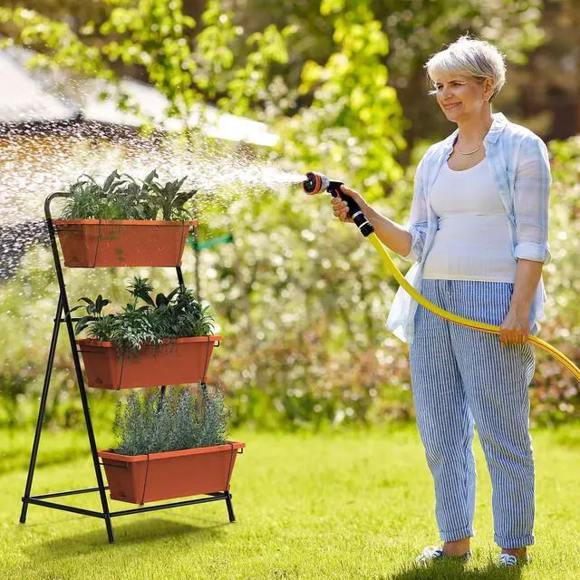 3 Tier Raised Garden BedThe vertical garden planter adopts 3-tier design, so there is enough space to plant and divide vegetables, herbs, flowers, etc. Save a lot of space for you and keep your garden well organized.