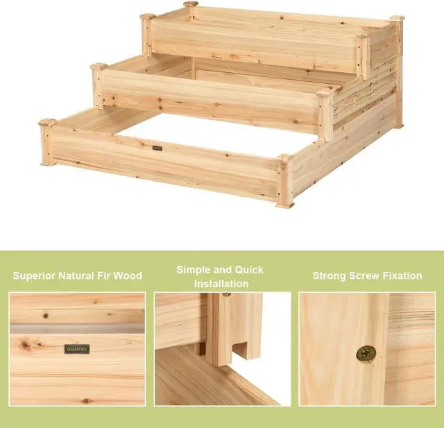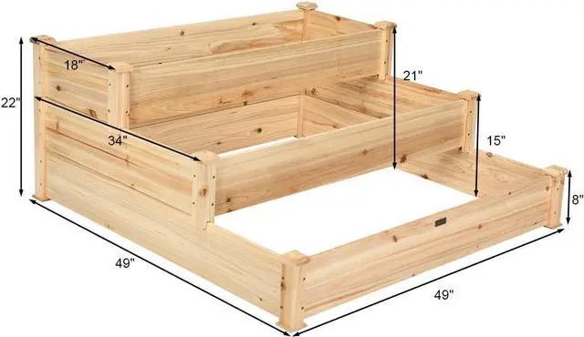 [Beautiful Look and Practical Use]: This planting box is made of pure wood makes it simple and clean structure and features can be placed on the balcony or garden making the environment more beautiful and the design of three-tier platform makes the planting box suitable for plants with different growth requirements makes it has strong practicability.