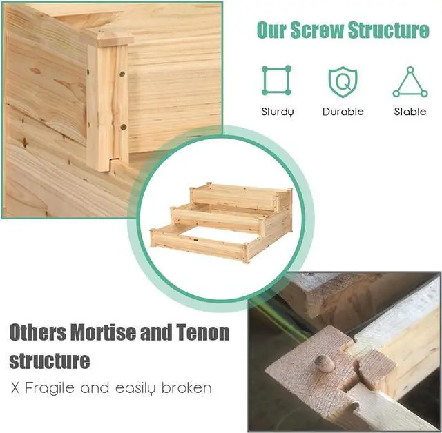 [Sturdy and Long-Lasting]: The planting box is composed of high quality wood, which is stable and durable to support the weight of plants and the required soil. The main raw materials of the product is fir wood.