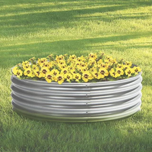 Allows you to garden almost anywhere Modular design with four 0.8 mm-thick corner panels Installs directly into soil without garden base Holds up to 16 cu. ft. of soil Can be used as tree ring for landscaping