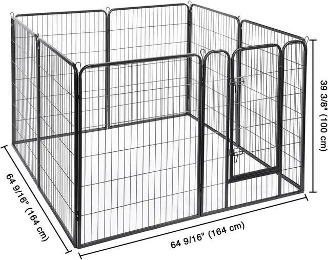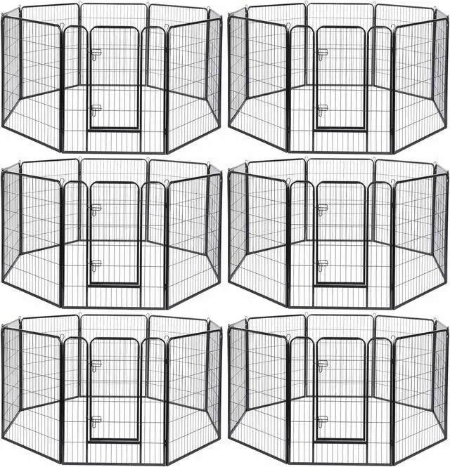 - Rust-resistant & Sturdy Fence - 48 pieces 31"Wx39"H Pet Playpen Panel is made of powder coated metal for great rust resistance, and keeping panel sleek and beautiful; 0.6"x0.6" square tube guarantees rigidity to withstand the weight of pet, ground stakes for firmly fixating the panels on the ground in outdoor space