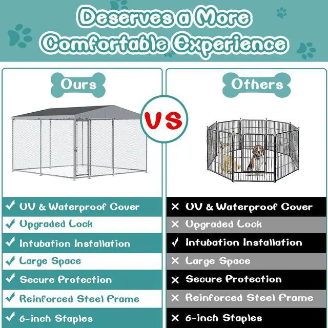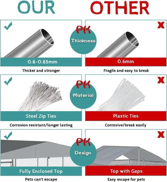 The cover of dog cage can be fixed on the metal pipes with rubber rope, which is easy to install and remove for easy cleaning.