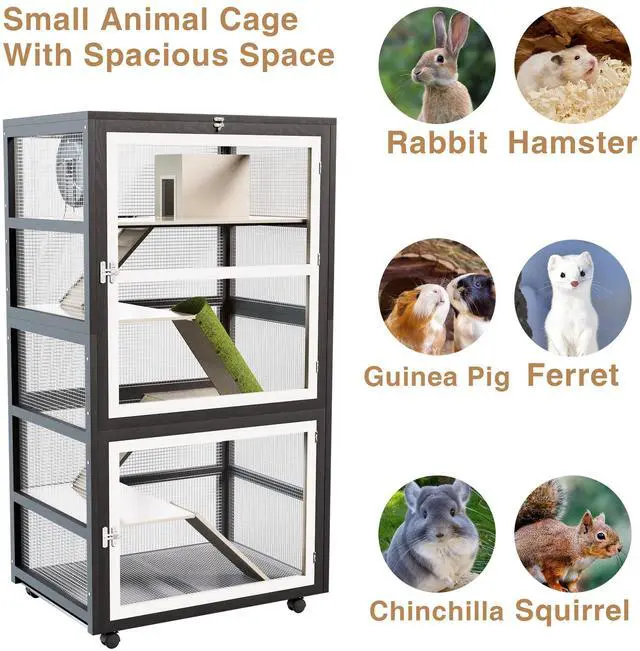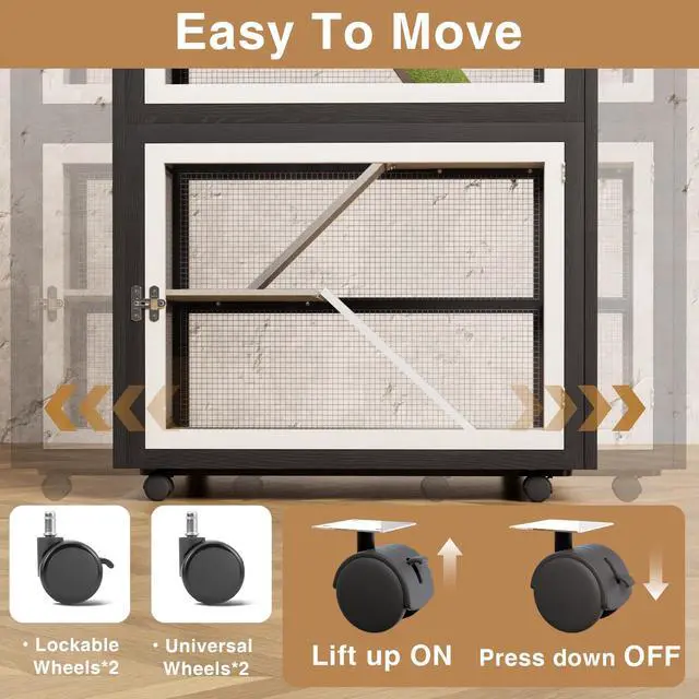 Detachable Tray & Mobile DesignPull-out bottom tray for fast cleaning; 4 universal casters with 2 lockable wheels for flexible movement. Versatile for ferrets, chinchillas, reptiles and small pets.