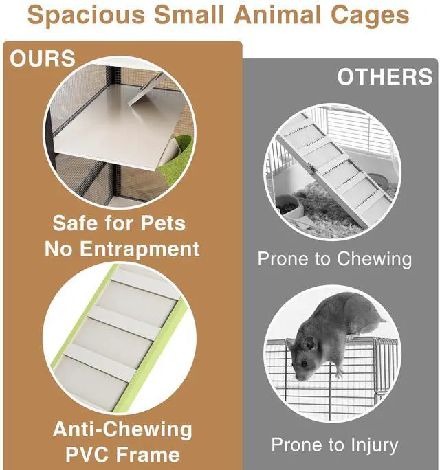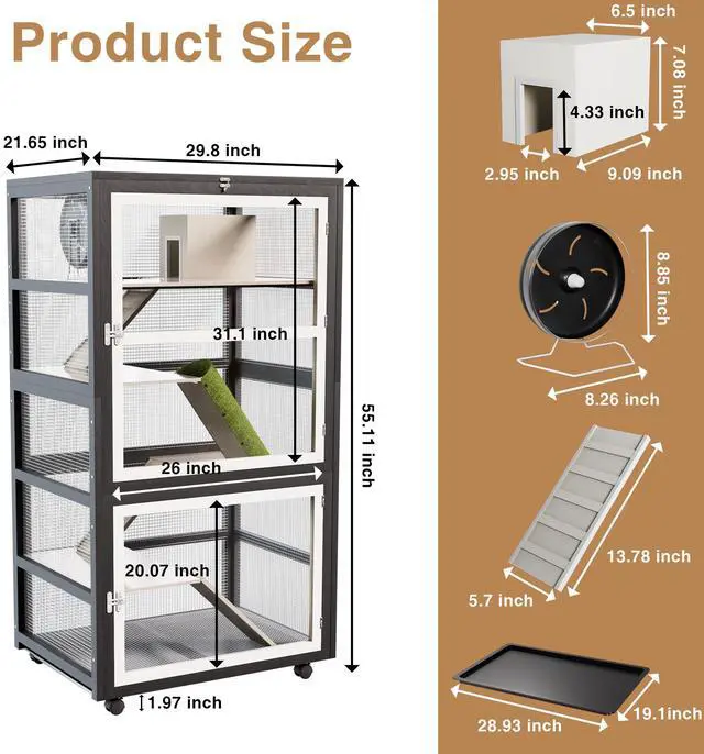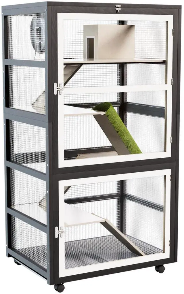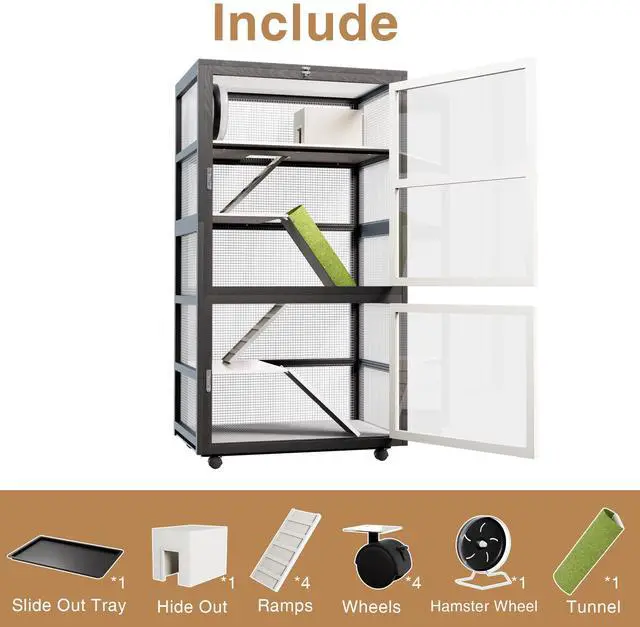 Multi-Level Habitat & Complete AccessoriesEquipped with 4 activity platforms, resting area, climbing ramp and running wheel. Multi-level structure meets pets climbing, playing and resting needs.