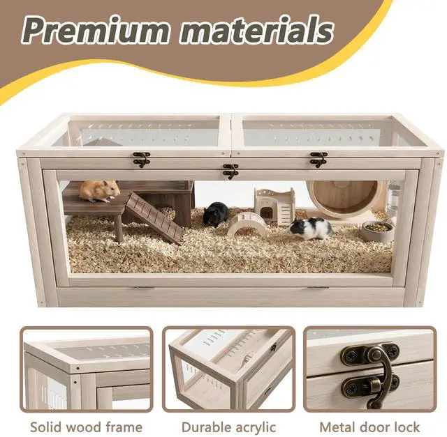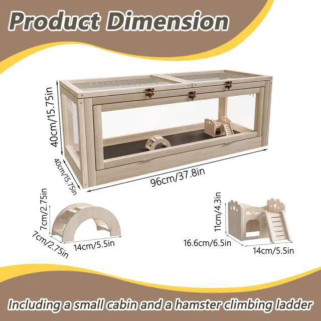 Spacious Large SizeSpacious enclosure measures 39.37×15.75×15.75 inches, comfortably housing 2-4 small pets. Provides ample space for guinea pigs, hamsters, gerbils, ferrets and other small rodents to rest, sleep and play freely.
