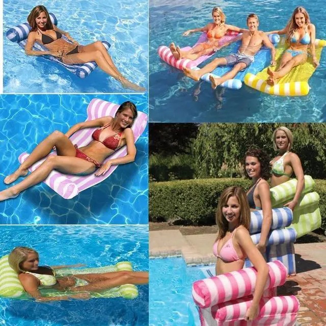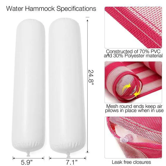The Swimming Pool Water Hammock Lounger brings traditional hammock style to the water with an all-weather fabric body and vinyl inflatable head and foot inserts. It folds easily for compact storage or travel.