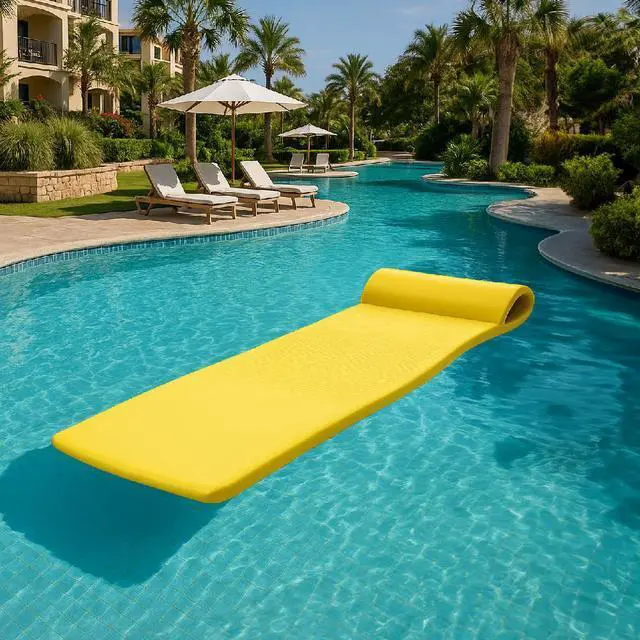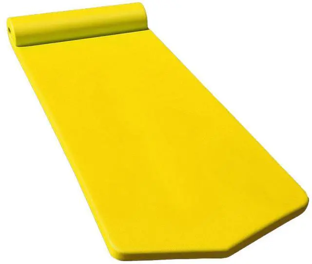 The California Sun Deluxe Oversized Pool Float is a soft, cushioned pool float designed to make you feel like you are floating on water. This float is made of new-age materials and a unique soft, ever-floating closed-cell foam coated with vinyl to make it crack-resistant and able to last for years. No more buying cheap inflatables that pop after a few uses. This float can never sink. Our Deluxe Pool Float measures about 70 inches long and 25 inches wide with 1.25 -inch-thick foam, which will support virtually anyone in water. Weighing only about 7.4 lbs, the pool float can be rolled up and stored conveniently when not in use.