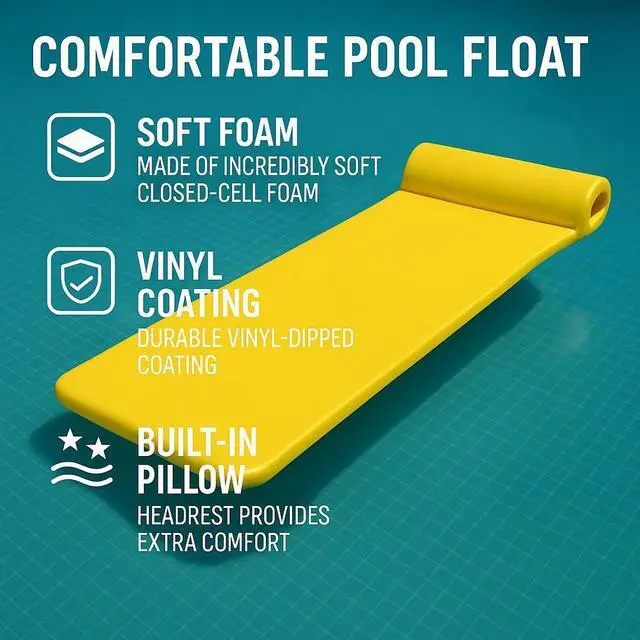 California Sun Luxury Vinyl-Dipped Pool Float with Built-in Pillow Soft Closed-Cell Foam Lounger for Adults, Unsinkable Water Mat (Yellow)