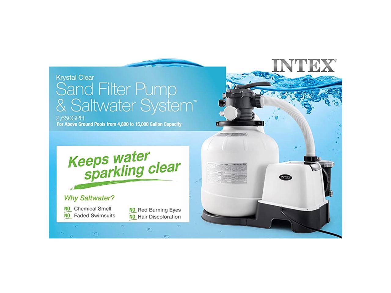 Intex 16-inch Krystal Clear Sand Filter and Saltwater System Pump is a great solution for above ground pools with 4,800 to 15,000 gallons of capacity