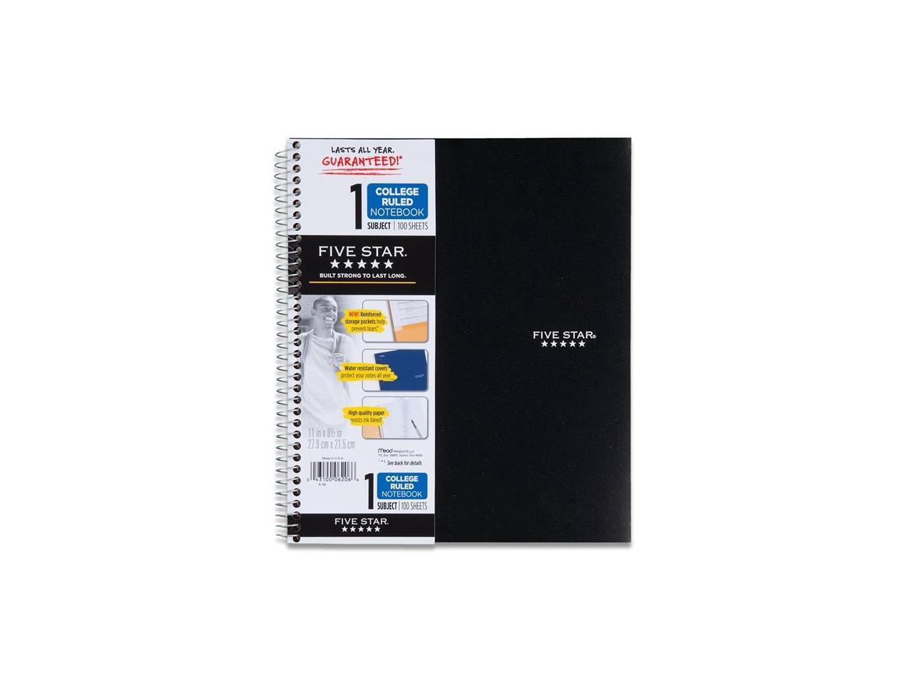 Five Star 72057 Wirebound Notebook, College Rule, 11 X 8 1/2, 100 Sheets, Black