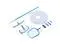 Delivery includes 1 vacuum, 1 skimmer, 1 wall brush, 1 scrub brush, 1 aluminum pole, 1 polymer replacement handle, 1 thermometer, 1 test strip and 1 white hose.