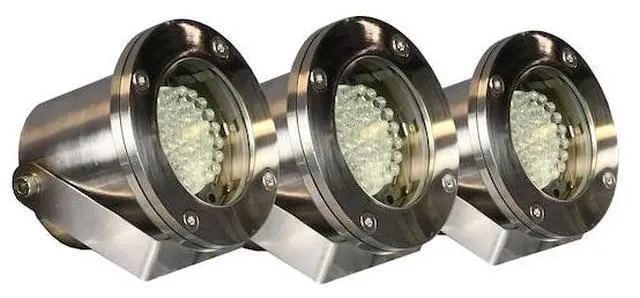 Pond Light Set, Compatible with Grainger Part Number 2VJ23, Compatible with Manufacturer Model Number 2VJ23, Cord Length 100 ft, Includes (3) LED Flood Lamps, Clear Lenses, Mounting Hardware, Lighting Technology LED, Nameplate Voltage 115V AC, Number of Lights 3, Power Consumption 120 W, Included Lens Colors Clear. This item has been restricted from sale in the following state (s): []