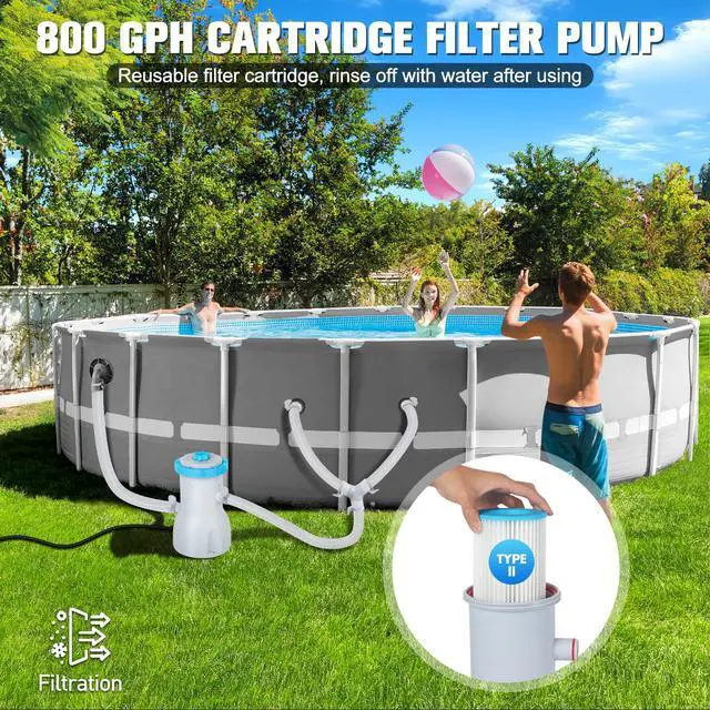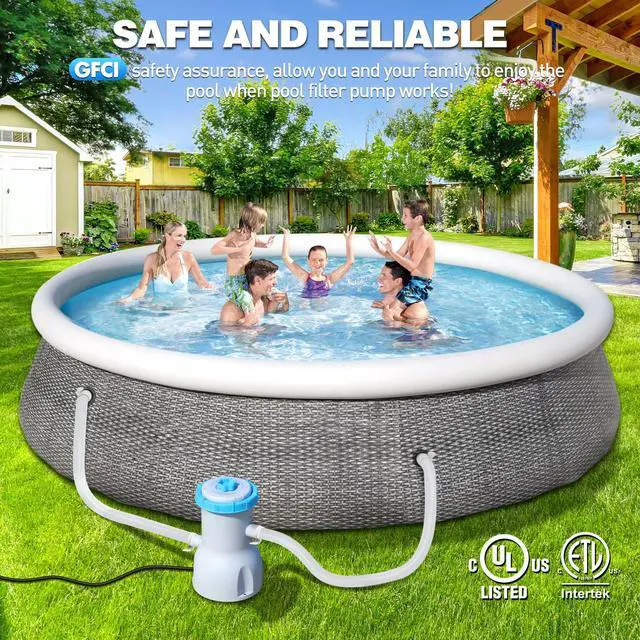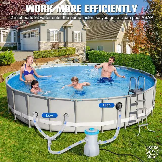 - Suitable for Various Pools - Our 800GPH above ground pool pump works perfectly with inflatable pools, metal-frame pools, and steel-wall pools, making it the best choice for easy pool water purification. Meanwhile, connect it to any standard smart plug on the market, and you can instantly enable scheduled cleaning a great convenience for your pool cleaning. Ready to embrace effortless pool maintenance? Lets dive into endless summer fun together!