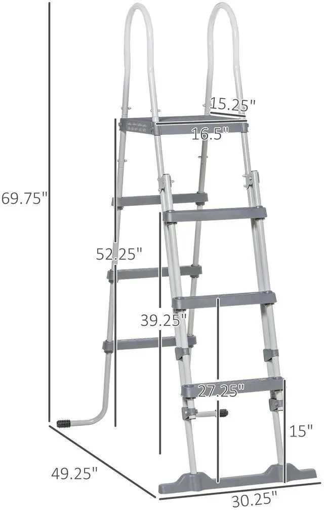 Pool: With steps on both sides to get in and out easily, our above-ground pool ladder brings safety to your swimming space. Suitable for above-ground pools with a height of 4 feet.