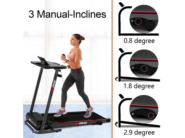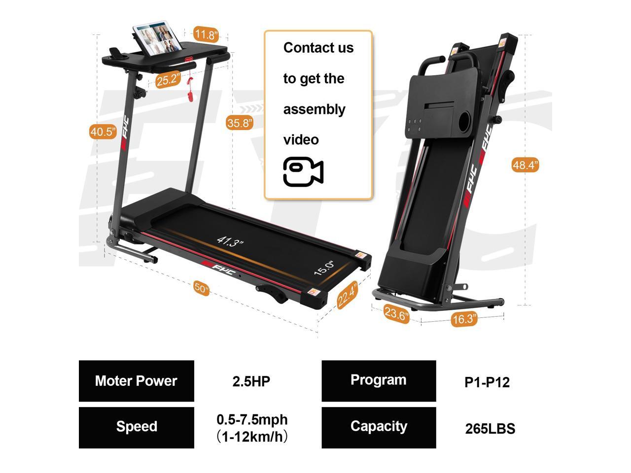 - Folding Treadmill with Desk: The treadmill has a large desk that you can place a laptop, book or other, the size of desk is 25.2"(L) x 11.8"(W).