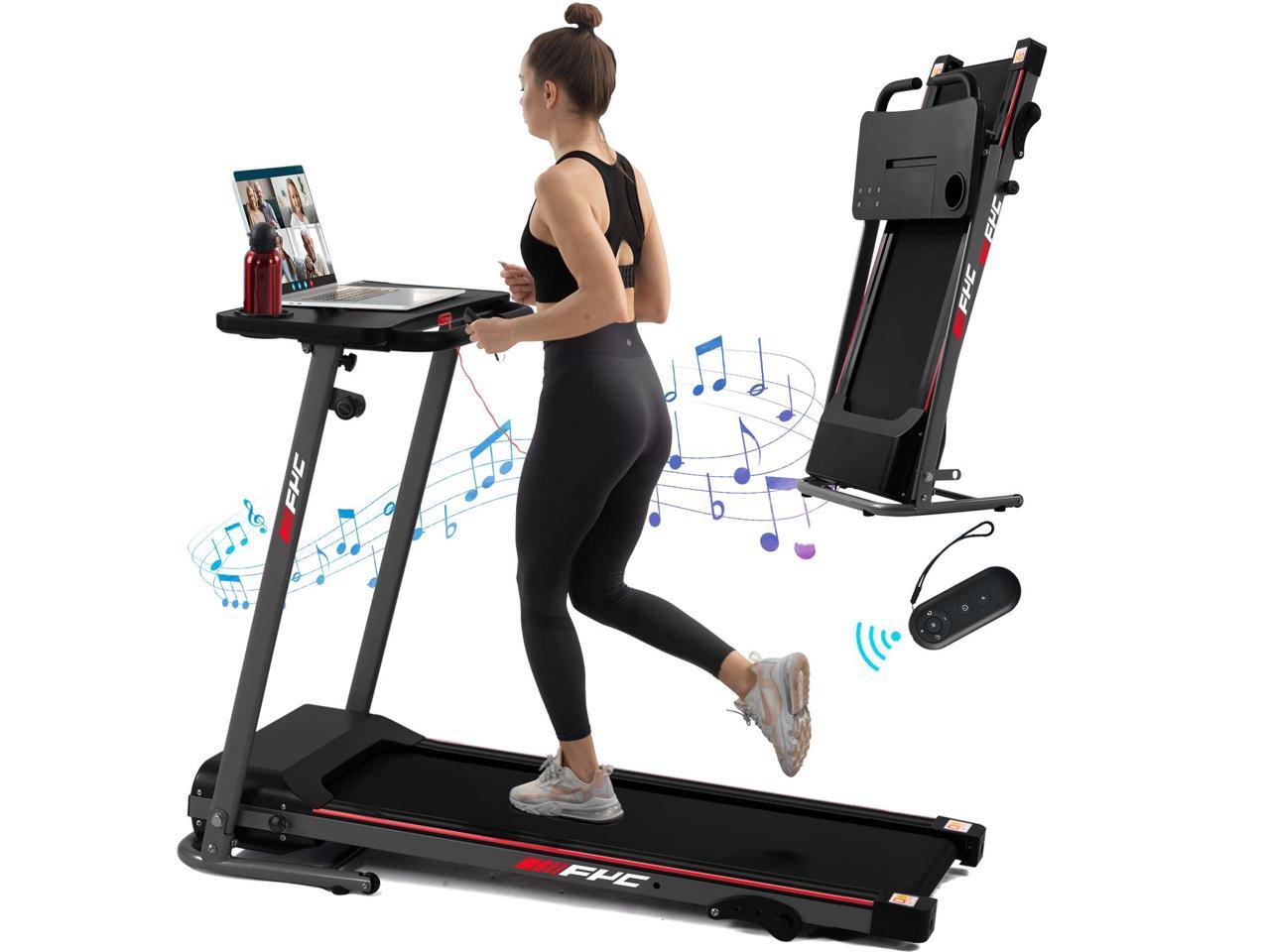 FYC Folding Treadmill for Home with Desk - 2.5HP Compact Electric Treadmill for Running and Walking Foldable Portable Running Machine for Small Spaces Workout 265LBS, JK1608-2 Black
