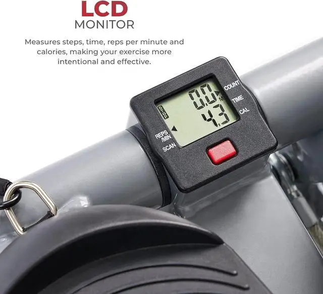 TRACK YOUR FITNESS Stay informed with the LCD monitor, tracking steps, time, and calories burned. Shape your exercise regime to be more effective and aligned with your goals.