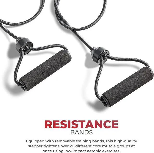 RESISTANCE BANDS Boost your workout with 2 removable resistance bands. Target over 20 core muscles, enhancing toning for your chest, back, and shoulders, all while engaging in a low-impact aerobics routine.