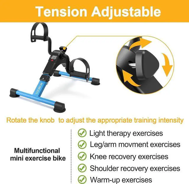 Tension Adjustable- Adjust the tension knob to control the level of resistance and workout intensity, pedal motion is smooth and very easy even for the seniors.