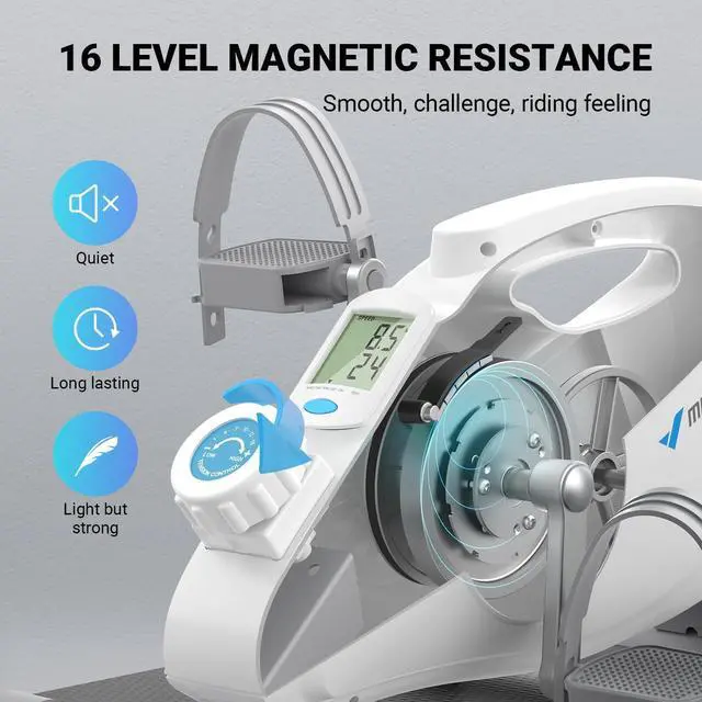 16-Level Smooth Magnetic Resistance: MERACH under desk bike operates on a magnetic resistance mechanism, allowing you to choose from multiple resistance settings. A cardio solution for office calorie burn, physical therapy, and even senior fitness!