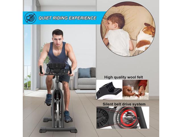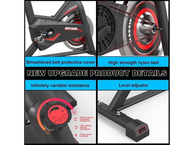 - EXERCISE BIKE FOR HOME Heavy-duty steel frame of the exercise bike guarantee the stability while cycling.It supports up to 300 lbs max weight.Infinite resistance system and Belt Drive System can ensure that you are in a stable state during exercise.Provide you with a smooth and silent riding experience.Suitable for all fitness levels.