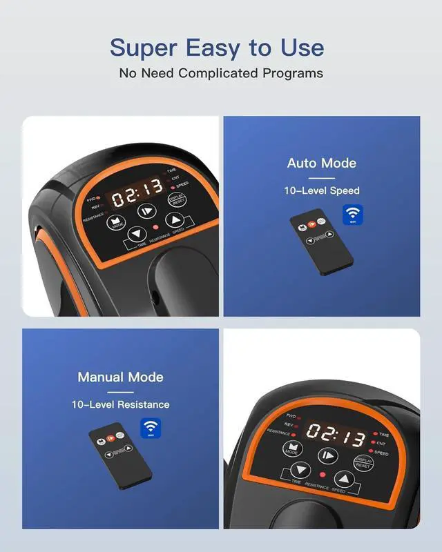 Very Easy to UseUnlike other electric under desk ellipticals, there are no complicated programs on our machines. All you have to do is press the button on the remote control and start moving.