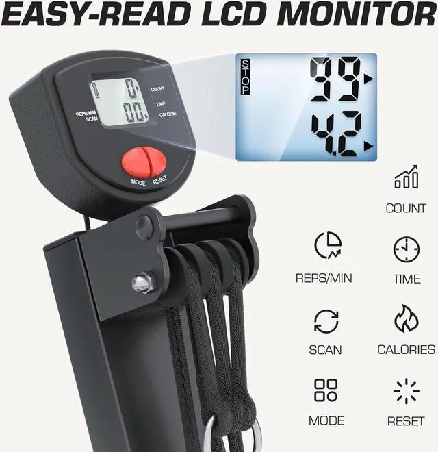 Multifunction Digital MonitorThe LCD monitor tracks your rowing time, counts, REPS/min, and calories in real-time. It' s convenient to track your progress toward your goals.