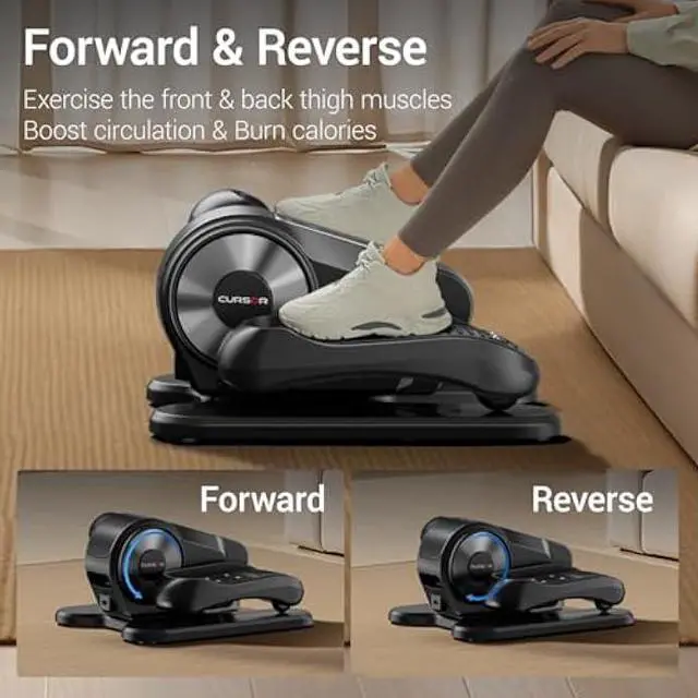 12 Speeds & 12 Modes: CURSOR Fitness elliptical training machine features 12 level speeds and 12 workout modes, providing diverse possibilities to elevate your exercise routine. Whether you are doing rehabilitation exercises or strengthen leg muscles and relax foot joints, choose the different speed and mode you want. You can use under desk elliptical while watching TV, reading newspapers or working