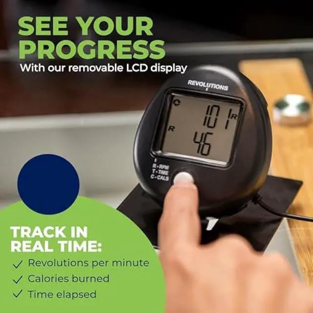 EASY TO USE: Large 6-Function LCD display tracks revolutions, RPM, time, calories burned and more. For easy reading, remove the display from under the desk and set it up on your table with the included display stand.