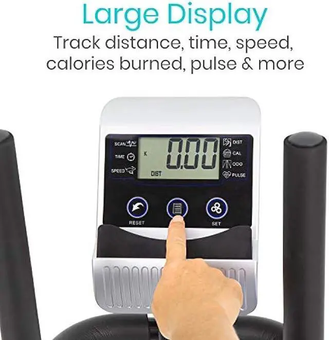 MULTI-FUNCTIONAL DISPLAY: Setting goals for target heart rate, distance, time and more, the recumbent bike features an easy to use LCD display. View the time elapsed, distance, speed, RPM and calories burned. Utilizing the pulse sensors located on the lower handlebars, the screen will also display your current pulse rate. End each workout with a 1-minute recovery session to cool down with the recovery mode button.