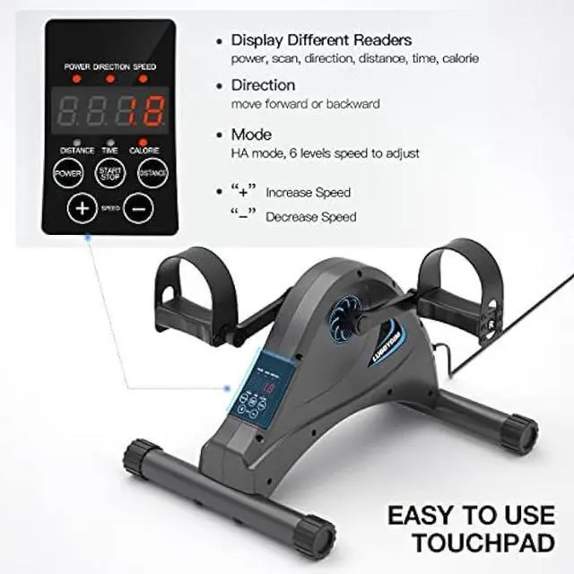 ERGONOMIC DESIGN & MULTIPLE OPTIONS - This mini electric exercise bike offers multiple options to meet your needs: motorized or manual assisted pedaling, forward and backward. It features ergonomic adjustable pedals, which allow its use both for feet and hands