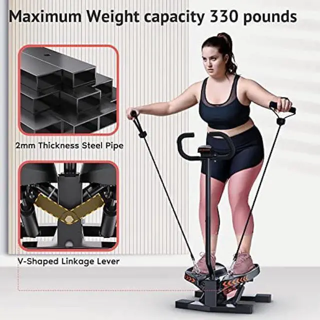 330 LBS Weight CapacitySportsroyals twist stepper for exercise used 2mm high-quality steel and precision bearings, more sturdy and durable. Heavy-duty steel construction after thousands of tests, we make sure our step machines are to support 330lbs.