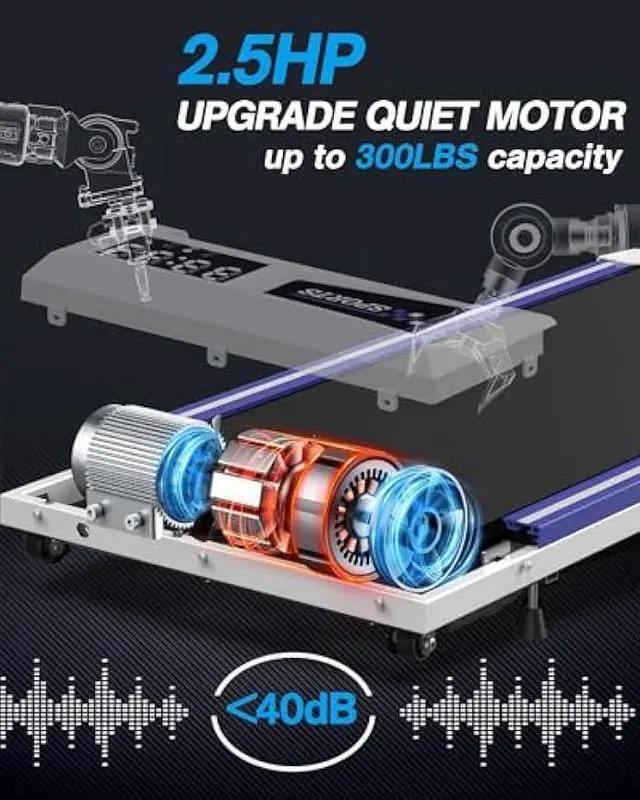 3 IN 1 UNDER DESK TREADMILLWELLFIT walking treadmill under desk built-in upgraded 2.5HP quiet motor, the noise lower than 40dB is great for multitasking. 0.6 - 1.0 MPH for working mode, 1.0 - 2.0 MPH for walking mode, 2.0 - 3.8 MPH for jogging mode to meet your different needs. Prioritize your health and enjoy the benefits of exercise from the comfort of your home office