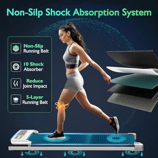 Running belt structure: 5 layers of non-slip running belt and silicone column support can greatly absorb the impact caused by the movement, providing cushioning for the knees, muscles and ankles.